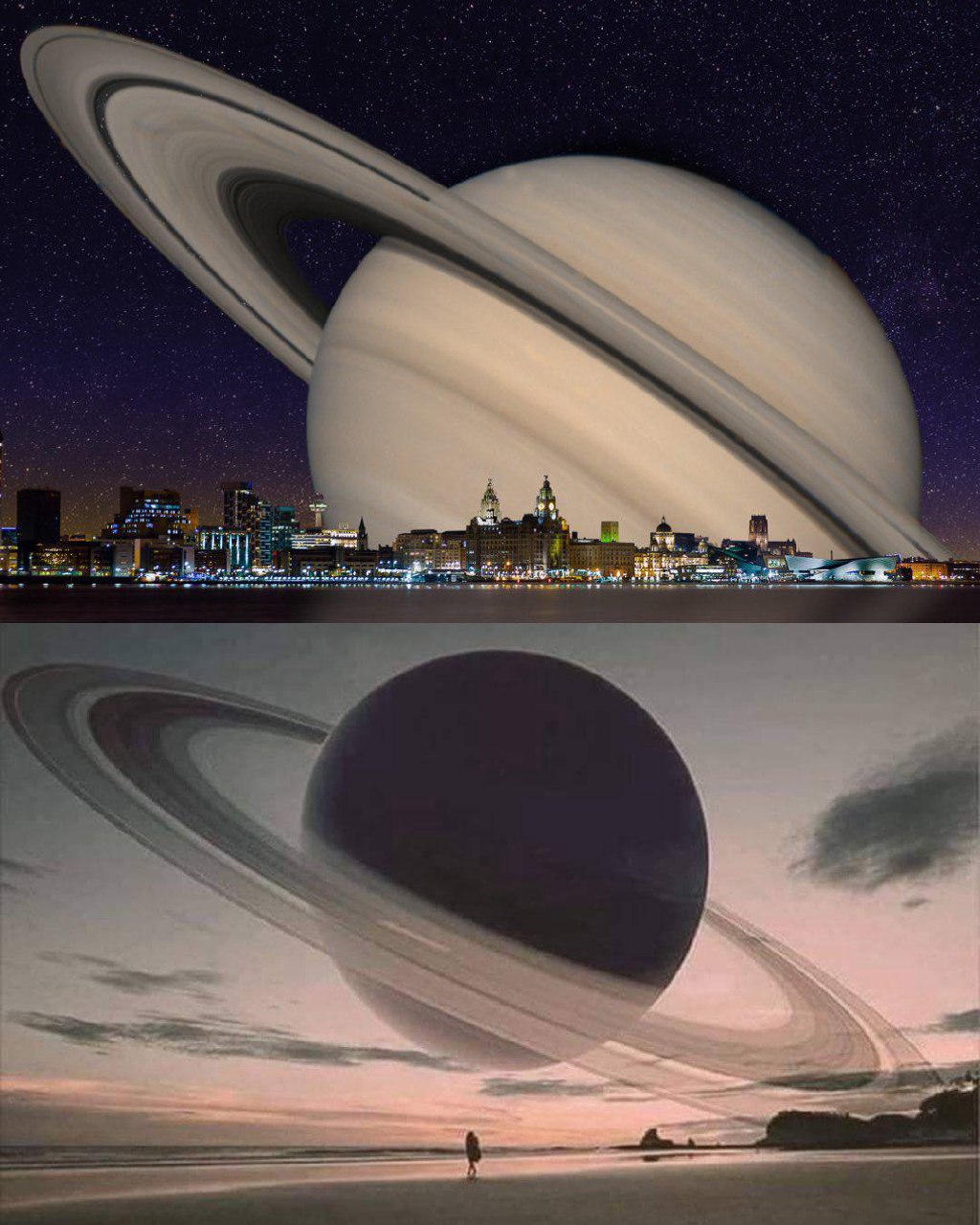 Если бы Сатурн был расположен также близко к Земле, как Луна, вот такую красоту бы наблюдали. Но есть нюанс: океаны и земная кора бы улетели в космос, а мы бы остались любоваться этим видом на раскаленном шаре.