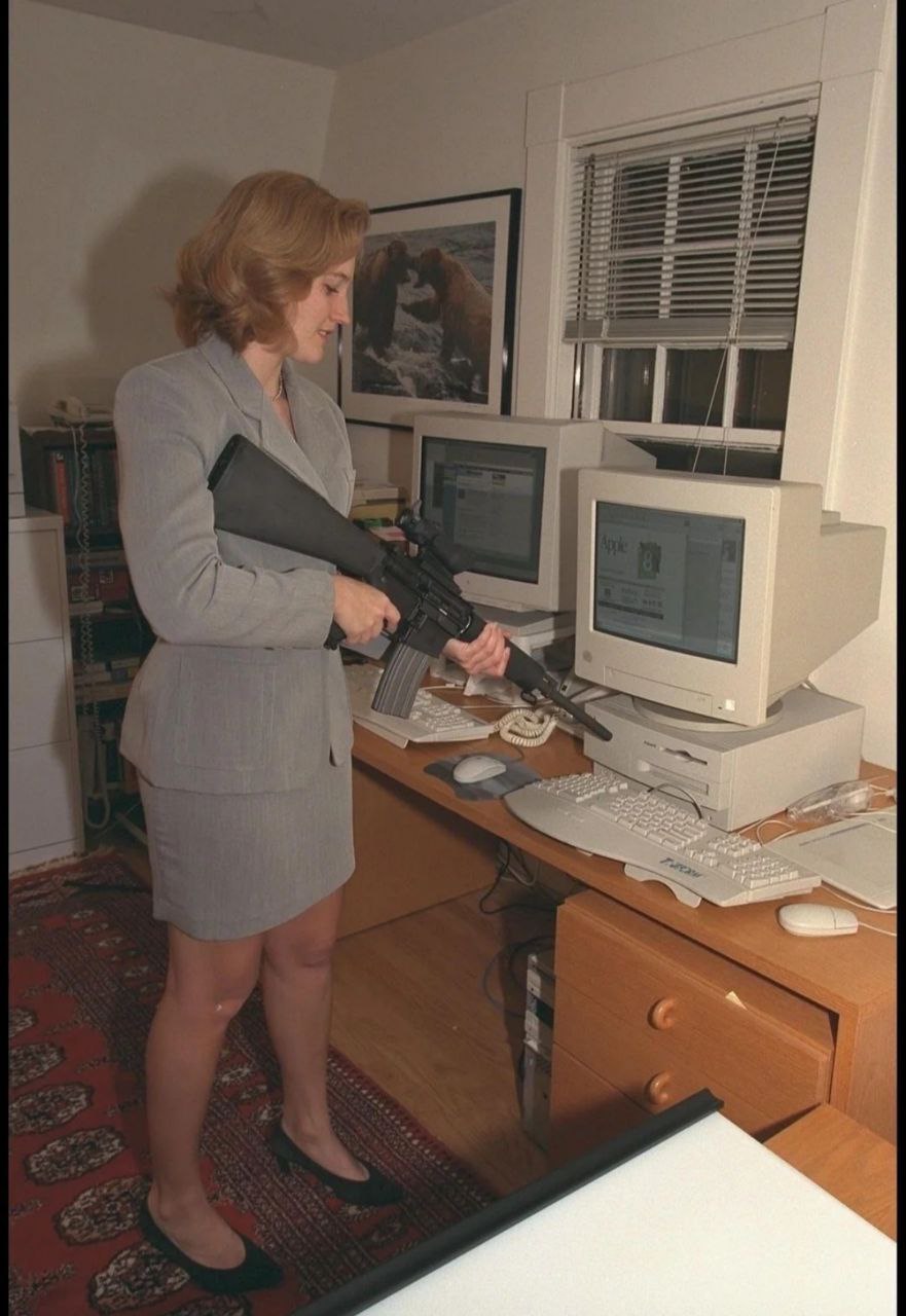 1998 год. Женщина угрожает компьютеру оружием. А потом мы ещё спрашиваем, с чего все началось