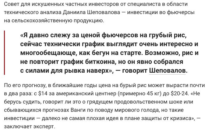 Быть IT-экспертом мне показалось мало, пробрался в ЭКСПЕРТЫ ПО РИСУ. Ваш стратегический аналитик и эксперт в области всего, Даниил. https://www.gazeta.ru/business/2021/11/17/14214253.shtml