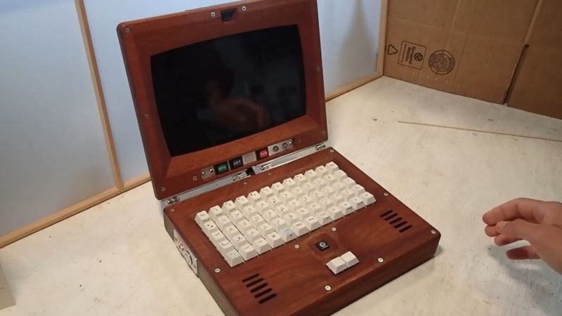 Это Compu-tor, лэптоп на основе Raspberry Pi в кейсе из красного дерева