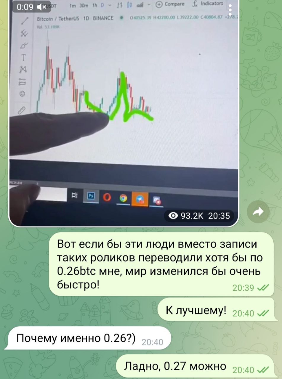 Мне что понравилось в этом диалоге: вопросов, что надо переводить мне btc, чтобы изменить мир к лучшему, даже не возникло. Про числа только уточнили.