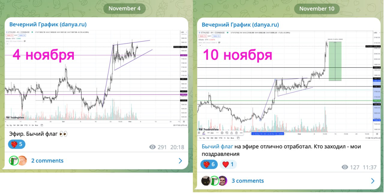 Но сможет ли машина написать симфонию? Или сказать кожаным, куда она двинет крипту через несколько дней? Никогда не скажет. А эксперт Даниил Шеповалов иногда говорит. Например, 4 ноября спрогнозировал памп эфира и поделился со всеми в канале Вечерний График, некоторые наварились и благодарят в комментах. Выкладываю там интересные ситуации, которые замечаю на графиках по крипте, нефти, золоту и серебру, в общем по коммодитиз. Если кого интересуют эти темы - велкам.