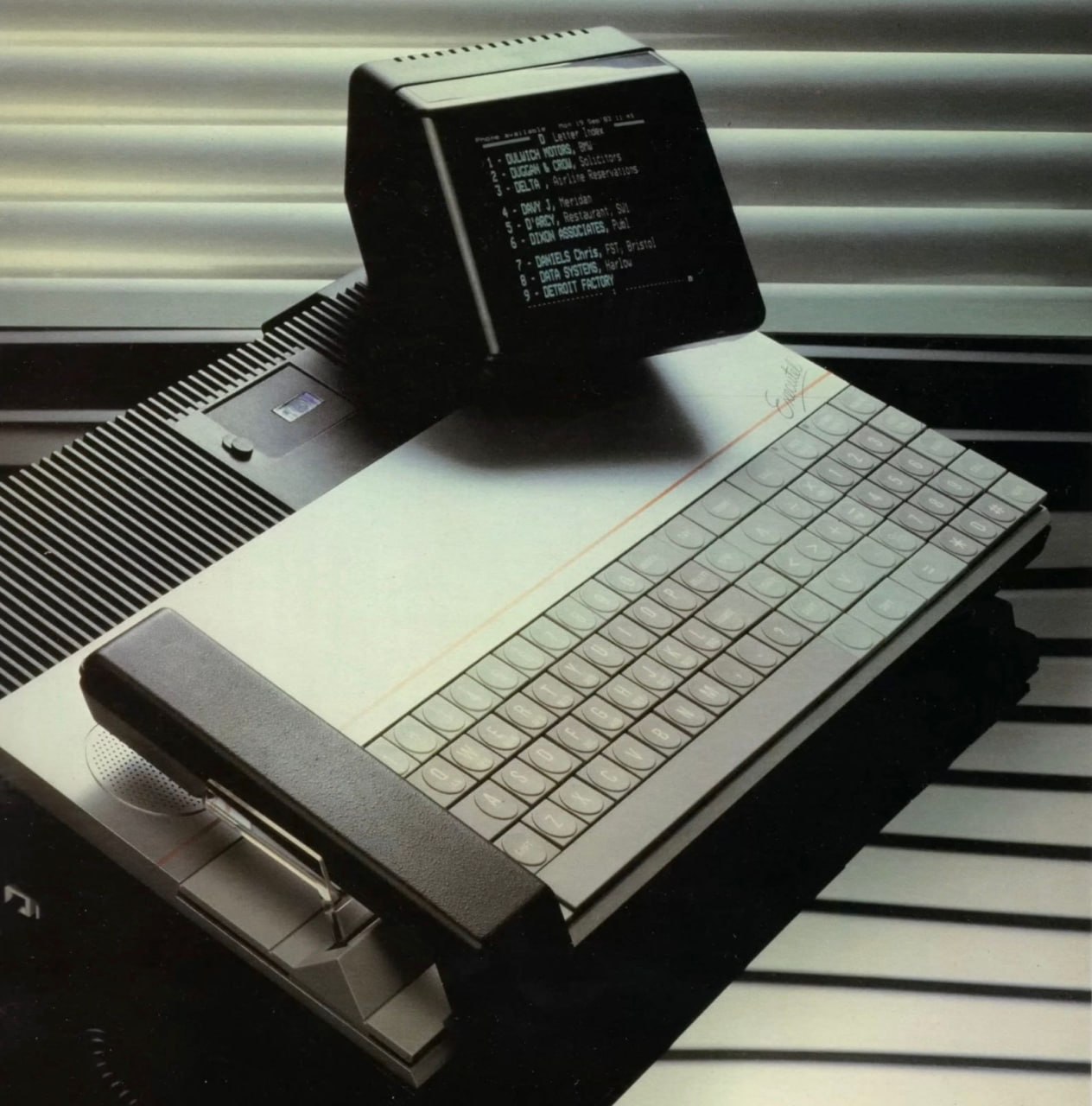 Понтовый смартфон из 1984 года. “Телефон для экзекьютивов” – STC Executel. Можно было хранить 235 телефонных номеров, пользоваться календарем, часами и делать заметки (и записывать их на микрокассету). Загружался тоже с микрокассеты при включении. Было продано всего 5000 штук, каждый по 1400 фунтов. Игор не было у него на микрокассетах, видимо поэтому и не зашел.