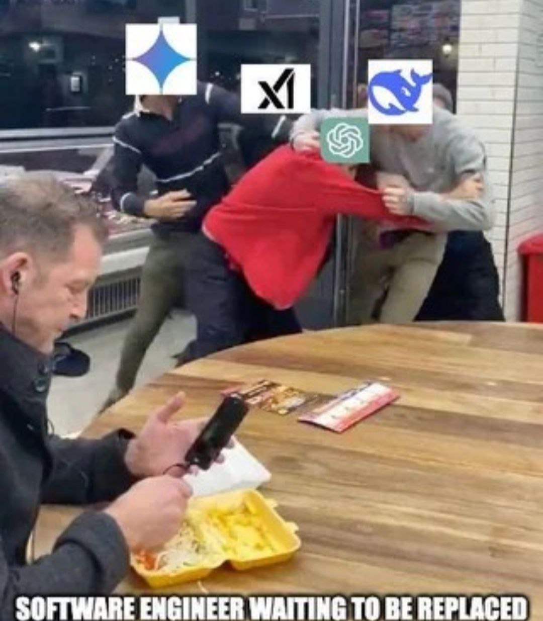 Ну, кстати, не знаю, оптимизма мема не разделяю. Я использую ChatGPT для кода и оно постоянно впечатляет. И с нуля пишет вполне себе, что остаётся только копипастить и сводить куски. И переписывает твою дикую дичь красиво, что прям приосаниваешься, какой у тебя лаконичный и стильный код, как у взрослых. Не знаю, что там герой на фотке ждёт, процесс походу вовсю идёт уже.