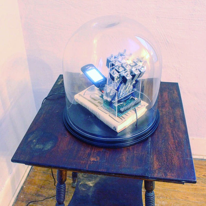 Современного художника Блейка Фелл-Конроя выучили на свою голову в Чикаго искусству и технологиям. Помимо разной прочей дичи типа Театра Слежки, Тележки-для-непокупок и Забора под напряжением он сделал Автокоммуникатор, который постоянно шлет по одному предложению из «1984» Джорджа Оруэлла смсками на рандомные телефонные номера. Живешь ты себе живешь, тут вдруг приходит: "Если хочешь сохранить секрет, надо скрывать его и от себя". Ну, думаешь, что ты в разработке АНБ или кого там, ложишься в дурку с паническими атаками и тревожными расстройствами на всякий случай. Спонсор поделок Блейка бигфарма наверняка