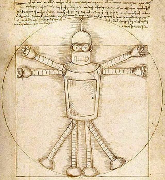 Леонардо Да Винчи: фигачит гусиным пером заметки про механических рыцарей, львов-аниматроников, танки, вертолеты и подлодки, берет бабки на все это у герцогов и королей.