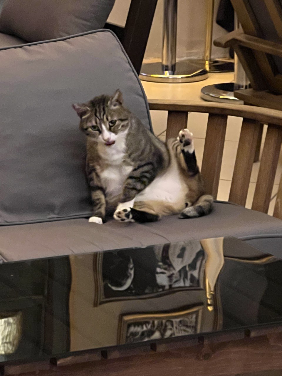 Таинственная загадка кота. В Турции в отеле на входе в лобби каждый вечер сидел этот жирный кот и оценивающе встречал каждого, кто заходил в отель. У него там было свое центральное место, на которое никто больше не садился, не то что другие коты, даже люди. Такой Godfather кот. Хотя там водились поджарые мускулистые бойцы, одноглазые ветераны боев за отельную еду. Котам мало было пробиться с боями в отель, еще и каждый день нужно было драться за свое. На этом же жирном коте ни царапины. И не выглядит он как лидер котовой хунты, чтобы его остальные слушались. Но он явно был самым главным. До сих пор волнует этот вопрос. Как кот стал отельным крестным отцом котцом?