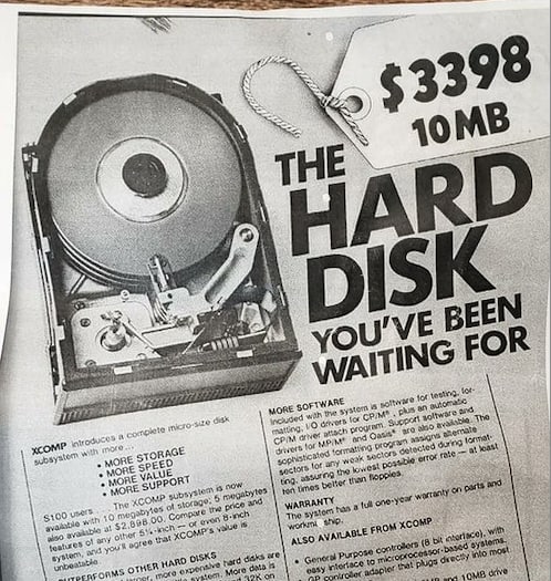 В 1985 диск на 10Mb стоил $3398. Это получается $339 за 1Mb. Сейчас диск на 1Tb стоит примерно $60. Это получается $0.000006 за 1Mb. В 56 миллионов раз дешевле выходит мегабайт стал стоить. Это еще без учета того, что сам доллар в 1985 гораздо дороже был сам. Понажимал кнопки на калькуляторе минуту, как будто что-то полезное сделал, упорядочил мир слегка.