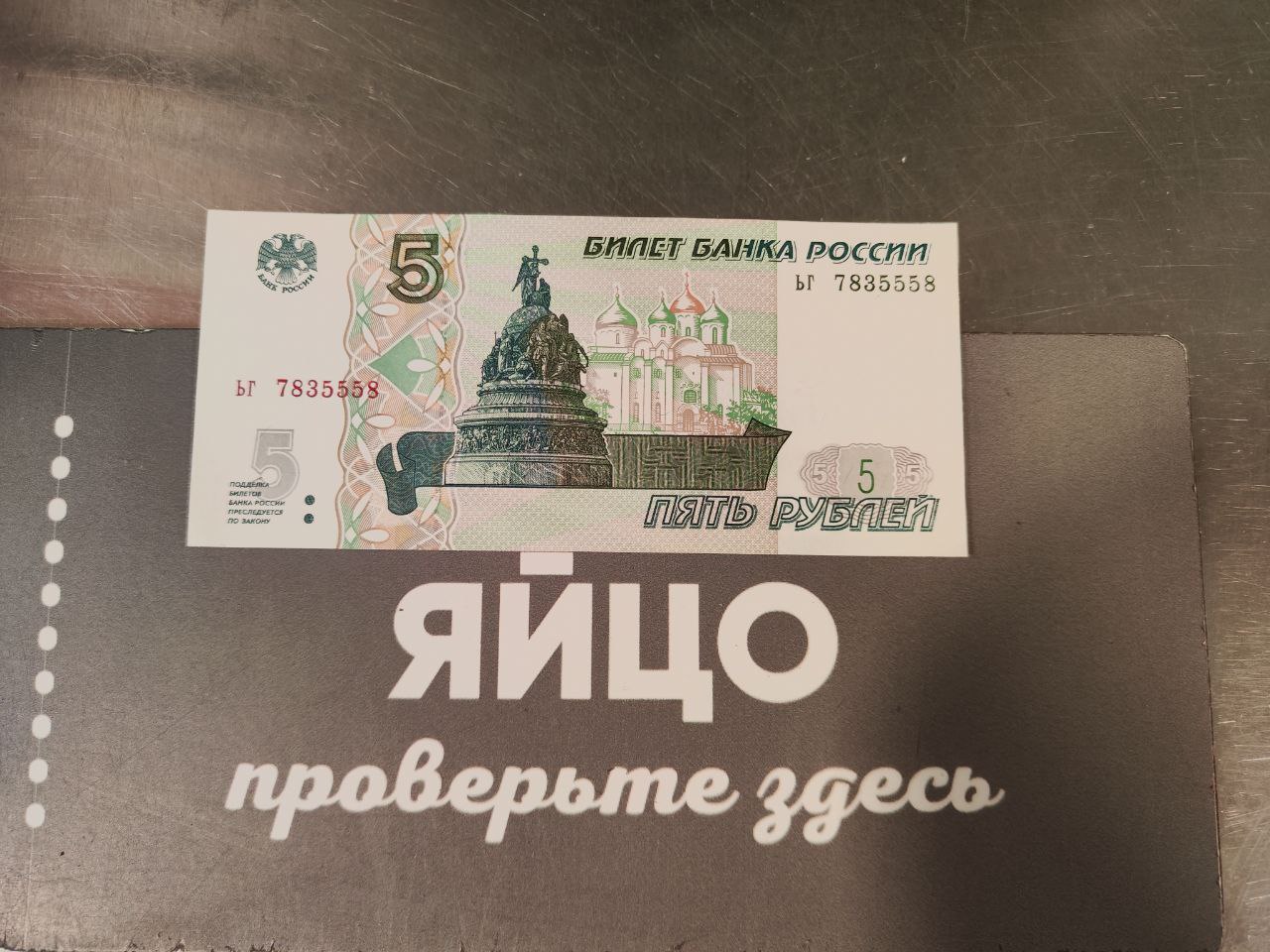 Дали на сдачу новенькие хрустящие бумажные пять рублей денег
