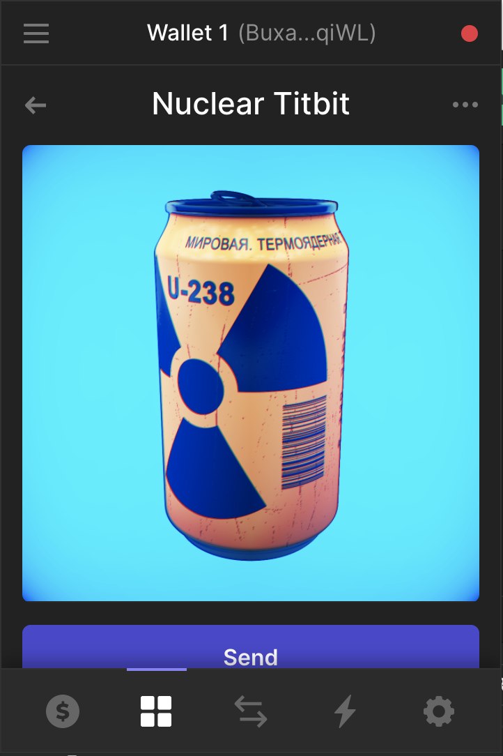 Все подарочные NFT-баночки отправились новым владельцам!) В фантоме можете посмотреть свои NFT, тыкнув на иконку с четырьмя квадратиками. Отправил банки не только 8 первым, но всем, кто оставил до 11 утра 31 декабря кошельки в посте. Вера и упорство должны вознаграждаться)) С учетом еще БЛАТНЫХ баночек, ушедших через личку, почти половина из 100 возможных в природе NFT титбита уже раздана.