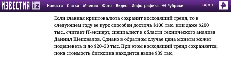 Тем временем комментирую курс биткоина в Известиях. Всегда ваш, Эксперт Даниил