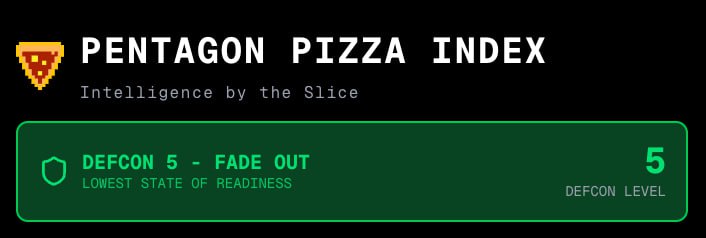 дашборд Pentagon Pizza Index есть в онлайне. Сейчас индекс 5, зеленый и спокойный.