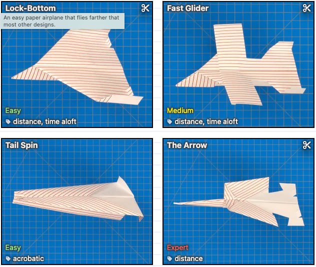 Не хватало сайта с 53 моделями бумажных самолетиков, подробными инструкциями по сборке и тактико-техническими характеристиками: от сколько раз нужно сложить лист А4 до скорости и среднего времени полета.