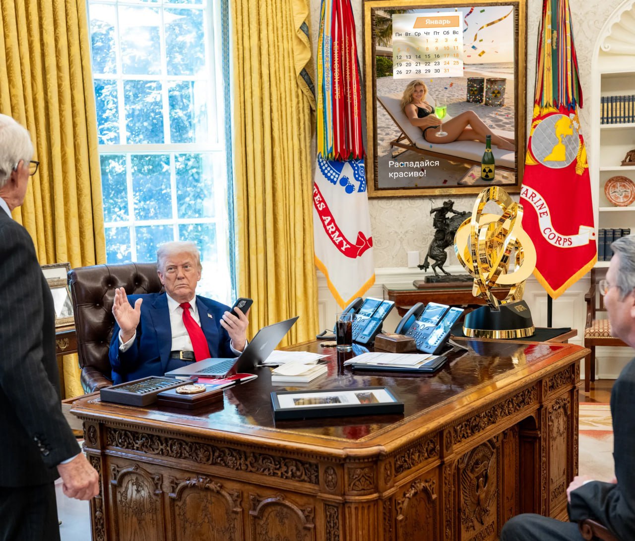 "Дэниел, это невероятно! На Новый год я сидел в Мар-а-Лаго, пил лучшее шампанское, очень дорогое, поверь мне, самое дорогое. И я смотрел на стену. Там висел календарь с Ингрид. И я почувствовал такую МОТИВАЦИЮ от календаря, такую UNLIMITED POWER, что Америка показалась мне маленькой. Я посмотрел на январь, потом на февраль. И я сказал себе: Дональд, этот календарь требует от своего владельца масштаба. Мы покупаем Гренландию! Прямо сейчас! А если не продадут, мы ее просто заберем. Серьезно, Дэниел, это не календарь, это тотальное доминирование на стене”