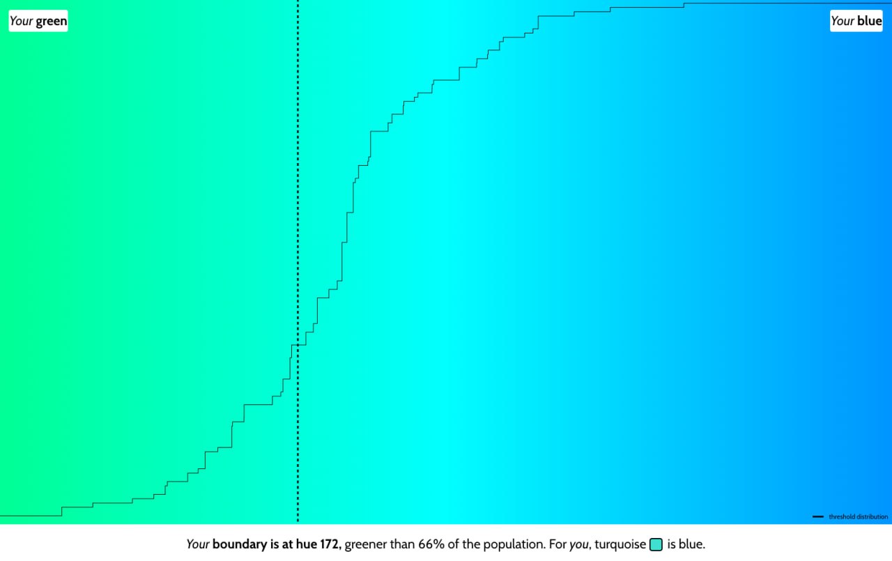 Проверяете, насколько ваш голубой цвет голубой по сравнению с мнением других землян. Мне, например, сказали, что для меня "бирюзовый - уже голубой". Не знаю, что и думать теперь.