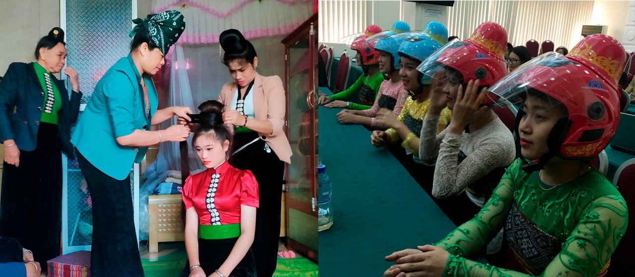 Женщины народности тайдам во Вьетнаме носят высокие пучки, чтобы обозначить свое замужество. Поэтому для них делают специальные мотошлемы.