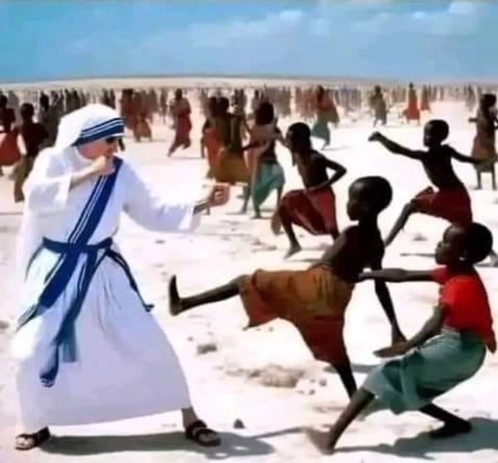 AI попросили нарисовать картину "Мать Тереза борется с бедностью"
