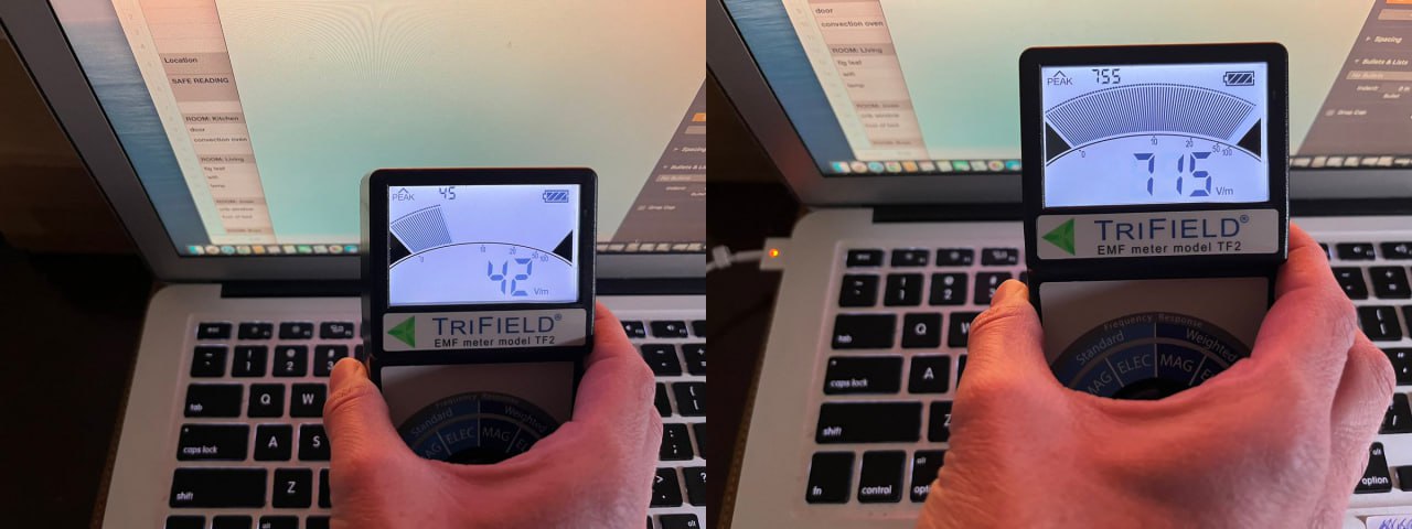 Внимание, надеваем штатные шапочки из фольги. Мужик измерил поле своего макбука во время зарядки и без зарядки. Во время зарядки цифры оказались в 17 раз больше. Ну это-то ладно, кто в полях не купается, того роботы в будущее не возьмут. Всемирная организация здравоохранения так прямо в журнале “Здоровье” и пишет. Меня больше раздражает, что ноут все время на зарядке держать нельзя, поскольку батарея того-с. Это я на собственном опыте проверил, как эксперт, через год работы от сети старый ноут перестал работать без сети (а потом и просто перестал). Пришлось читать про циклы зарядки и трепетно следить. У вас что с зарядкой? Следите или пофиг, один раз живем?