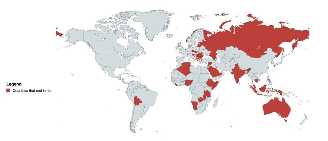 Страны, названия которых заканчиваются на ia. Каких-то выводов нет, но считаю информация важная.