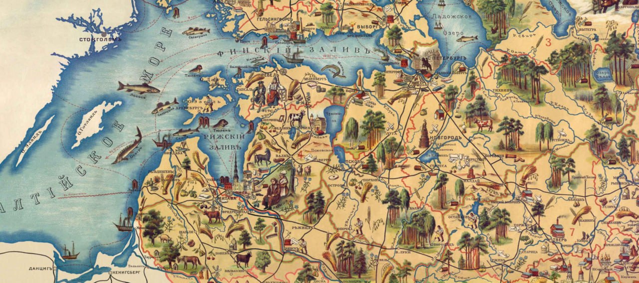 О, еще картография. Дореволюционная карта Европейской части России в духе Heroes of Might and Magic. На скрине маленький кусочек, вот тут полная версия, хайрез. На географии в школе мы получается какой-то конченой фигней занимались. Дали бы лучше игру вот по такой мировой карте, сел на коня, поскакал на побережье Финского залива ресурс с миногой захватывать, флажок свой поставил, изгиб побережья запомнил заодно. А однопартник в Петрозаводск поскакал пушки захватывать, отбил у тебя миноговую бухту потом. Карту Швейцарии похожую тоже видел как-то, долго разглядывал. Но надо современную такую на весь мир: тут чипы, там алмазы, тут пиздюли. Доходчиво и понятно. И движок Heroes подрубить. Идея для стартапа, получается. Мои 5%. Лучше 7.