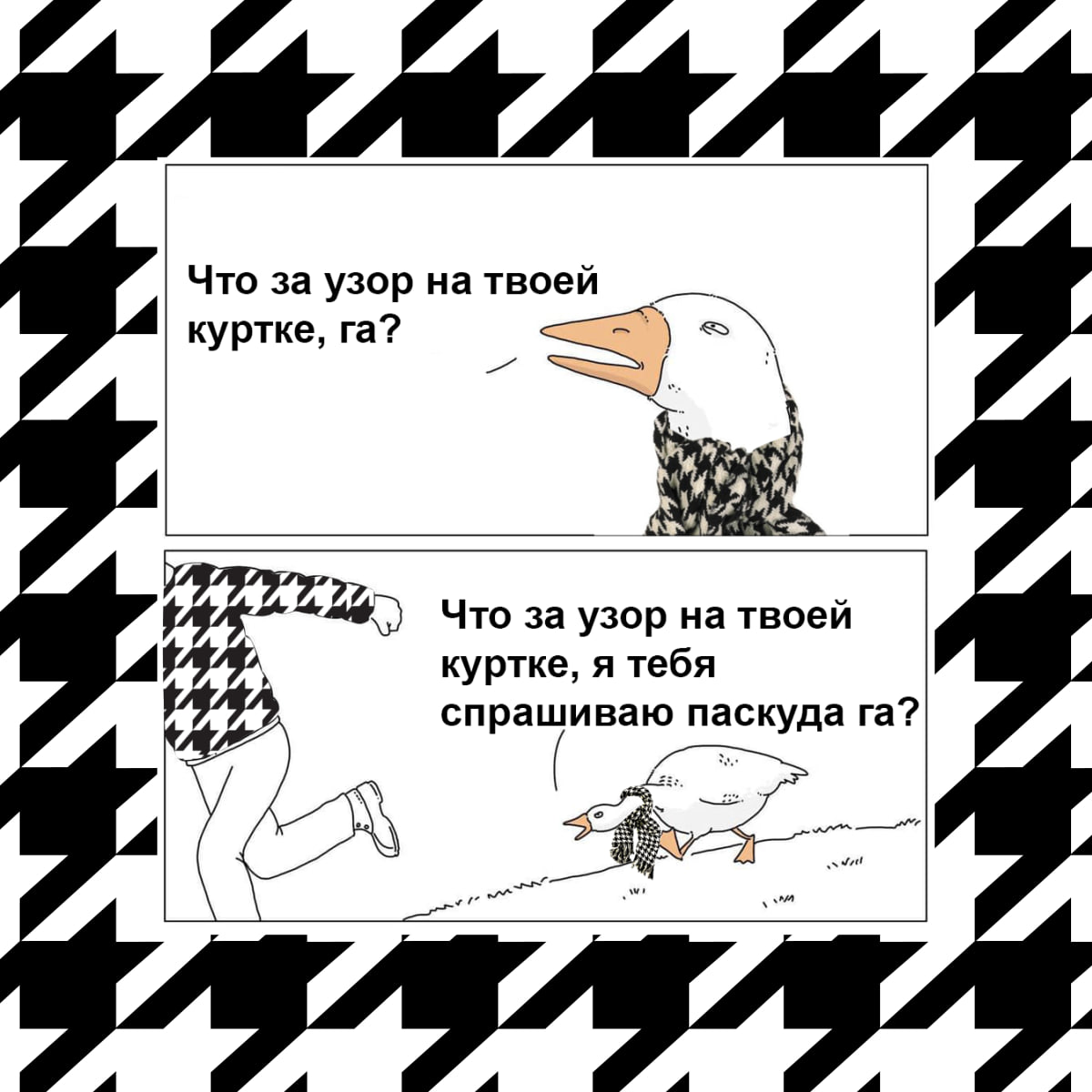 Кстати, по поводу элегантности гусей. Гуси действительно топовые типы по модности. Самый знаменитый модный паттерн в мире называется “гусиная лапка”. Его активно используют Chanel, Marc Jacobs, Louis Vuitton и многие другие. Впервые гусиная лапка появилась у шотландцев, еще во время Римской империи. Килт с таким узором означал, что владелец не принадлежит ни одному из кланов и его не обязательно забивать дубиной во сне из-за кровной вражды. Называется так узор, поскольку похож на отпечатки гусиных лап. Платят ли Шанель с Луи Виттоном гусям роялти за эту тему? Сомневаюсь. Но приковывает ли себя кто-то к их офисам в знак протеста? То-то и оно, похоже, проводится политика лицемерия и двойных стандартов, когда дело касается гусей! С вами был эксперт в области высокой моды Даниил Шеповалов.