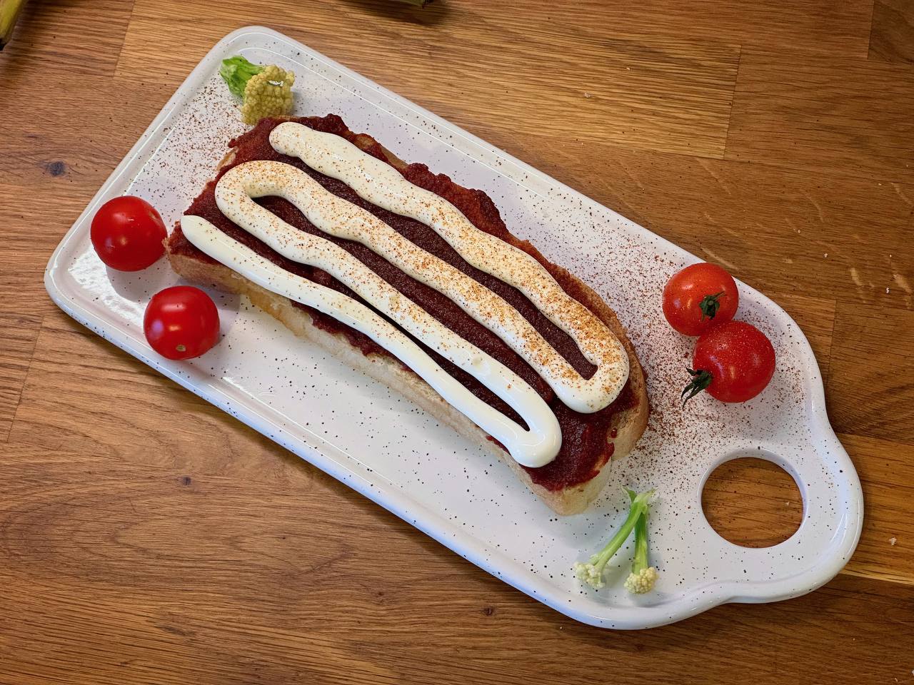 В составе брускеты крафтовый хлеб, томатная паста “Помидорка”, домашний майонез, приправлено крафтовой копчёной паприкой.